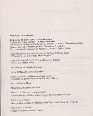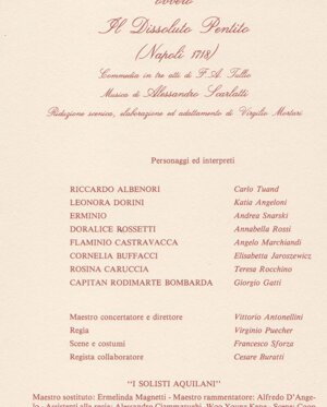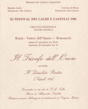 Al Brancaccio di Roma, invece, in occasione de "Il Trionfo dell'Onore, di Scarlatti, ha anticipato, nel lavoro preparatorio, Virginio Puecher."