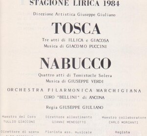 "La regia di Adriana Lecouvreur al Grande di Brescia, protagonista Maria Chiara, è stata realizzata da Maestrini con la collaborazione di Cesare Buratti che, subito dopo, al Donizetti di Bergamo ne è stato responsabile in prima persona.