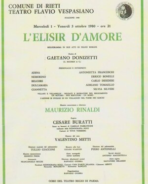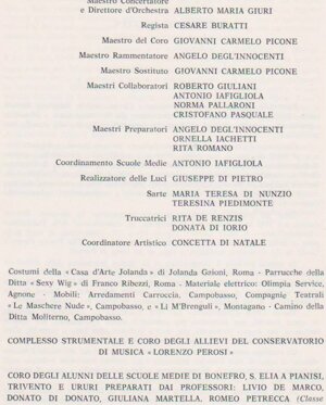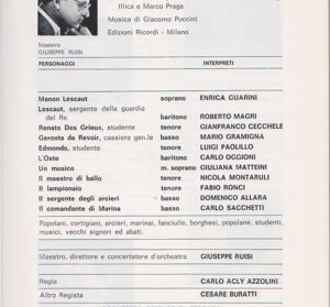 "Cesare Buratti con Manon Lesacut ha raggiunto il suo trentunesimo appuntamento registico con l'opera lirica perché, se pur titolare fosse Carlo Maestrini, questi per il concomitante impegno con Turandot a Dallas ha lasciato nelle mani del suo giovane collega tutte le prove d'insieme.