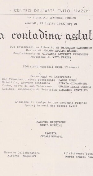 Al Brancaccio di Roma, invece, in occasione de "Il Trionfo dell'Onore, di Scarlatti, ha anticipato, nel lavoro preparatorio, Virginio Puecher."