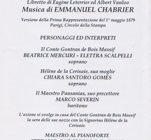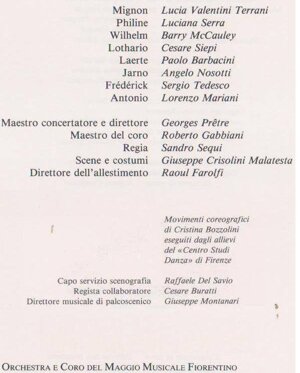 Lo abbiamo ritrovato al Comunale di Firenze per Mignon, alter ego di Sandro Sequi, adoprarsi autonomamente alle ultime prove fino alla generale e poi al Verdi per La Fanciulla del West a fianco di Carlo Maestrini."
