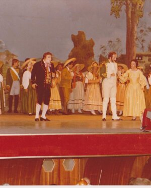 "Serena e lieta la tradizionale regia di Cesare Buratti con scene derivate dai bozzetti di Camillo Parravicini e costumi di Titus Vossberg"