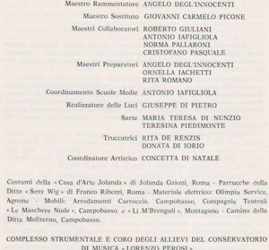 Buratti, che insegna arte scenica al Conservatorio di Matera ha curato anche un concerto al teatro Duni della Città dei Sassi Completo di costumi arredamenti e trucco, del quale sono stati protagonisti i suoi allievi.